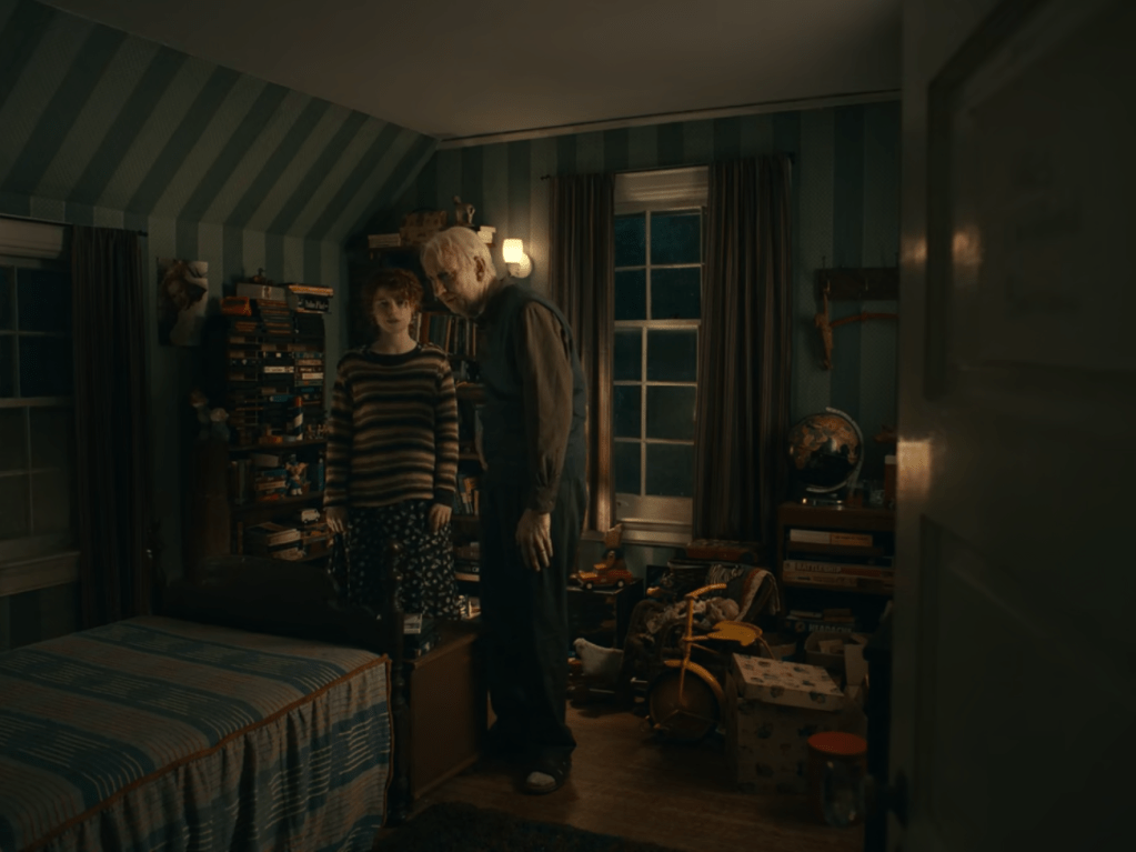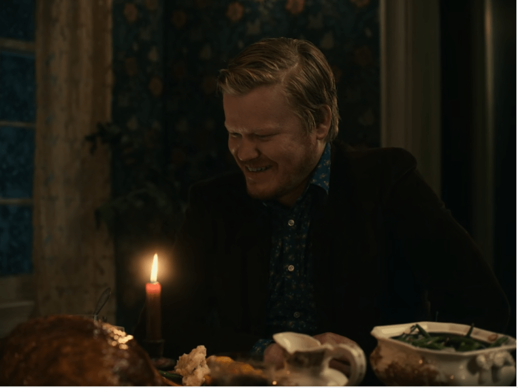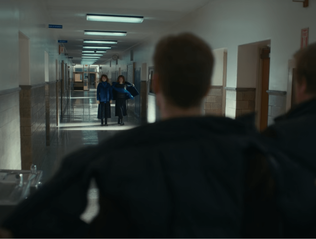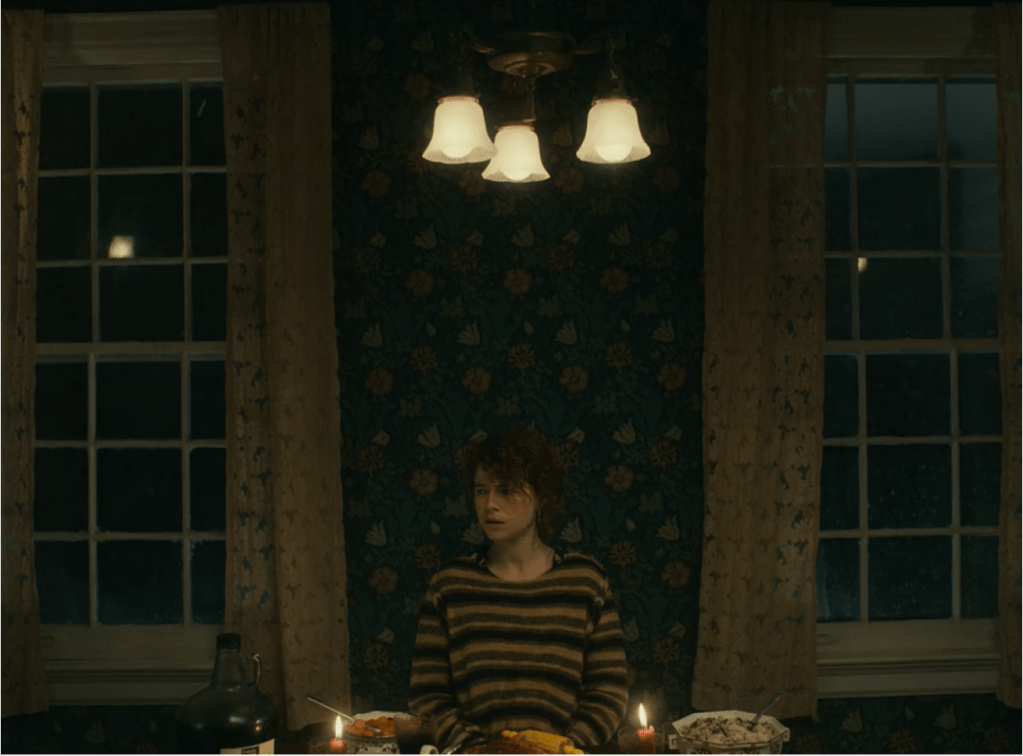 The scenes are intercut with the scenes of a janitor in a high school, who seems to be connected to Jake. Soon the couple reaches the farm and has dinner with Jake’s parents. You notice the little discrepancies in the car in the narrative structure, but as a viewer, you’re almost conditioned to suspend your belief for the sake of the story. But upon arriving, the young woman questions her identity and everything she knew about Jake as well. Things start to get weird, and you feel like this is starting to become a horror story, similar to Get Out (2017). Kaufman starts to play with space and time. They’re waiting for their parents to come downstairs for ages. Perhaps it was a matter of seconds for them. The parents seem to age from moment to moment, and time even seems to go backwards. We see the mother as a middle-aged lady, on her deathbed, and as a young woman. First the father is inquisitive and notices the narrative incoherence in the young woman’s story about how she met Jake, but soon becomes much older and demented. The young woman sees a picture of herself on Jake’s wall, which blends into Jake. That’s our biggest cue that her identity is dissipated. “Most people are other people”, she quotes Wilde.