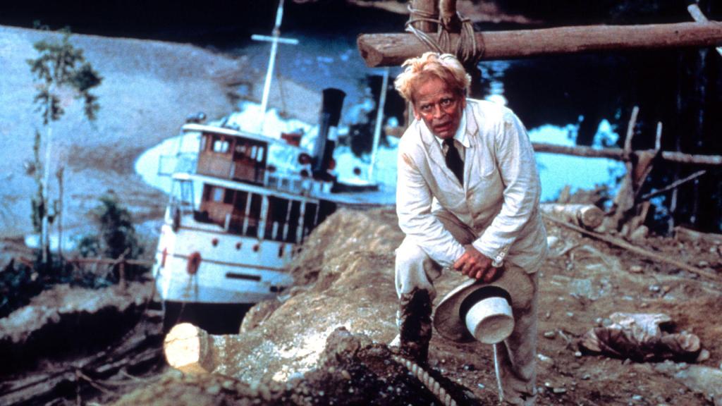 Initially, Herzog started shooting with two other main roles: Mick Jagger as Fitzcarraldo’s assistant Wilbur and Mario Adorf as the ship’s captain. However, due to delays, they left the project, and Herzog merged the two characters into one. At first, Herzog was hesitant to cast Klaus Kinski, thinking that he would go absolutely crazy being trapped in the jungle for months. Of course, that was exactly the case. According to Herzog, native extras were upset by his behavior, and one of the chieftains in all seriousness offered to kill Kinski for him. Herzog declined since he needed Kinski to complete his scenes but still isn’t sure to this day whether it was the right decision.